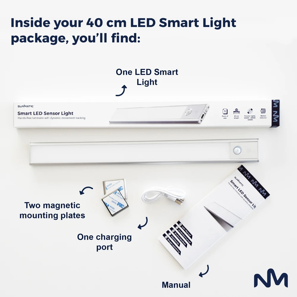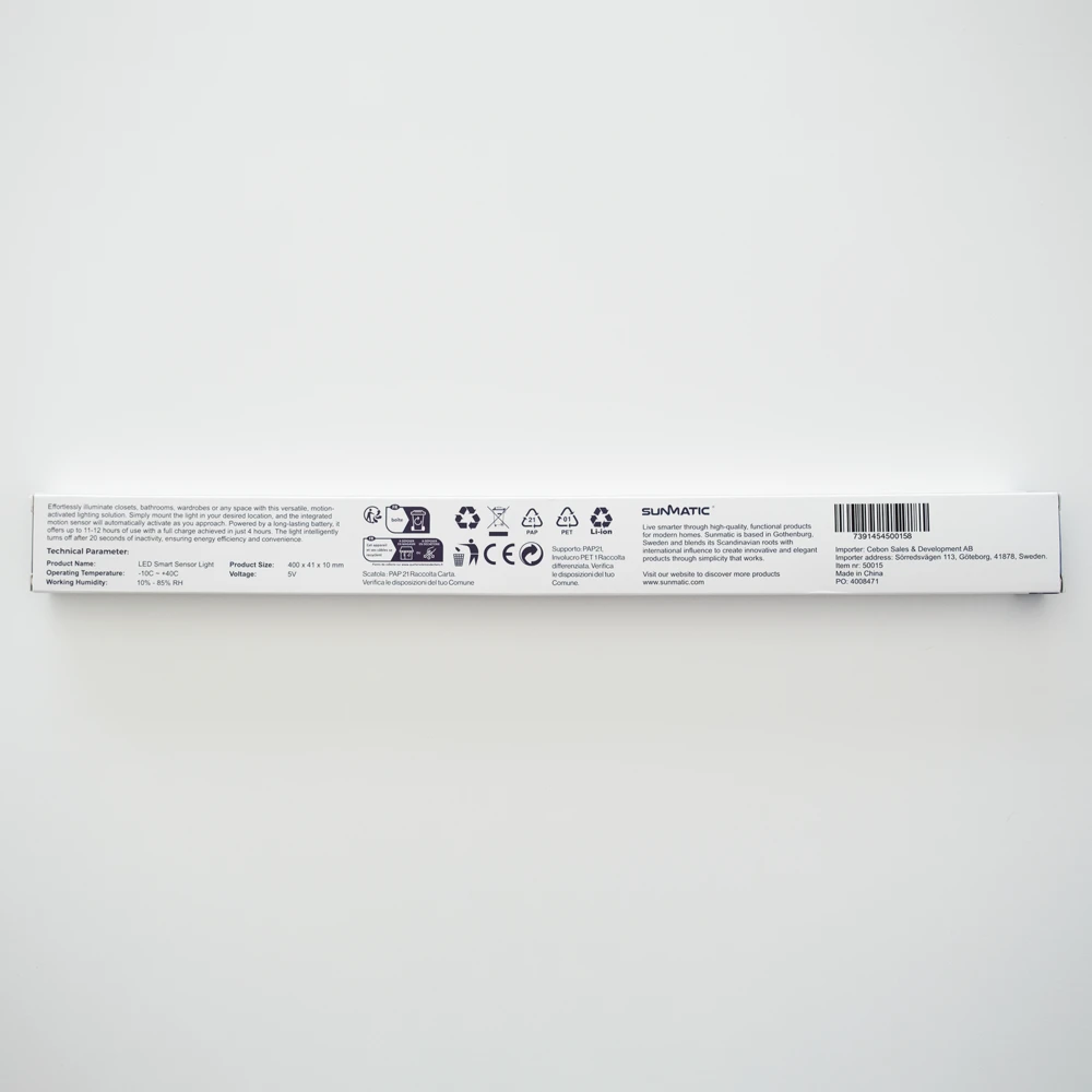Kompakti ja helppo asentaa – Kompakti koko (400 × 41 × 10 mm) tekee siitä täydellisen ahtaisiin tiloihin. Asennus on helppoa, minne tahansa tarvitset lisävaloa.