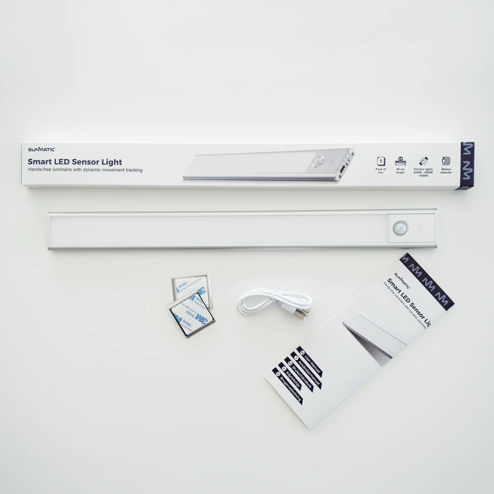 Valaise vaatekaapit, keittiötasot, käytävät tai muut tilat helposti ja vaivattomasti tällä liiketunnistimella varustetulla valaistusratkaisulla. LED Sensor Light on tyylikkäästi muotoiltu, minimalistinen ja helppokäyttöinen.