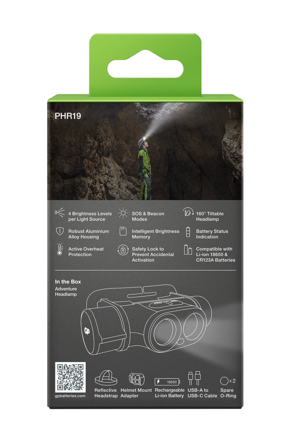 Rakennettu vaativimpiin tilanteisiin Kestävän ja vankan alumiinikotelon ansiosta se kestää iskuja ja pudotuksia jopa 1,5 metrin korkeudesta. Yhdistettynä siihen, että se on IPX8-luokiteltu ja siten vedenpitävä myös paineen alaisena, GP XPLOR PHR19 on täydellinen kumppani seikkailussasi. Jopa 38 tunnin akunkesto tarkoittaa, ettei sinun tarvitse koskaan huolehtia siitä, että lamppusi virta loppuu, ja jos niin käy, se latautuu täysin alle 3 tunnissa USB-C-portin kautta.