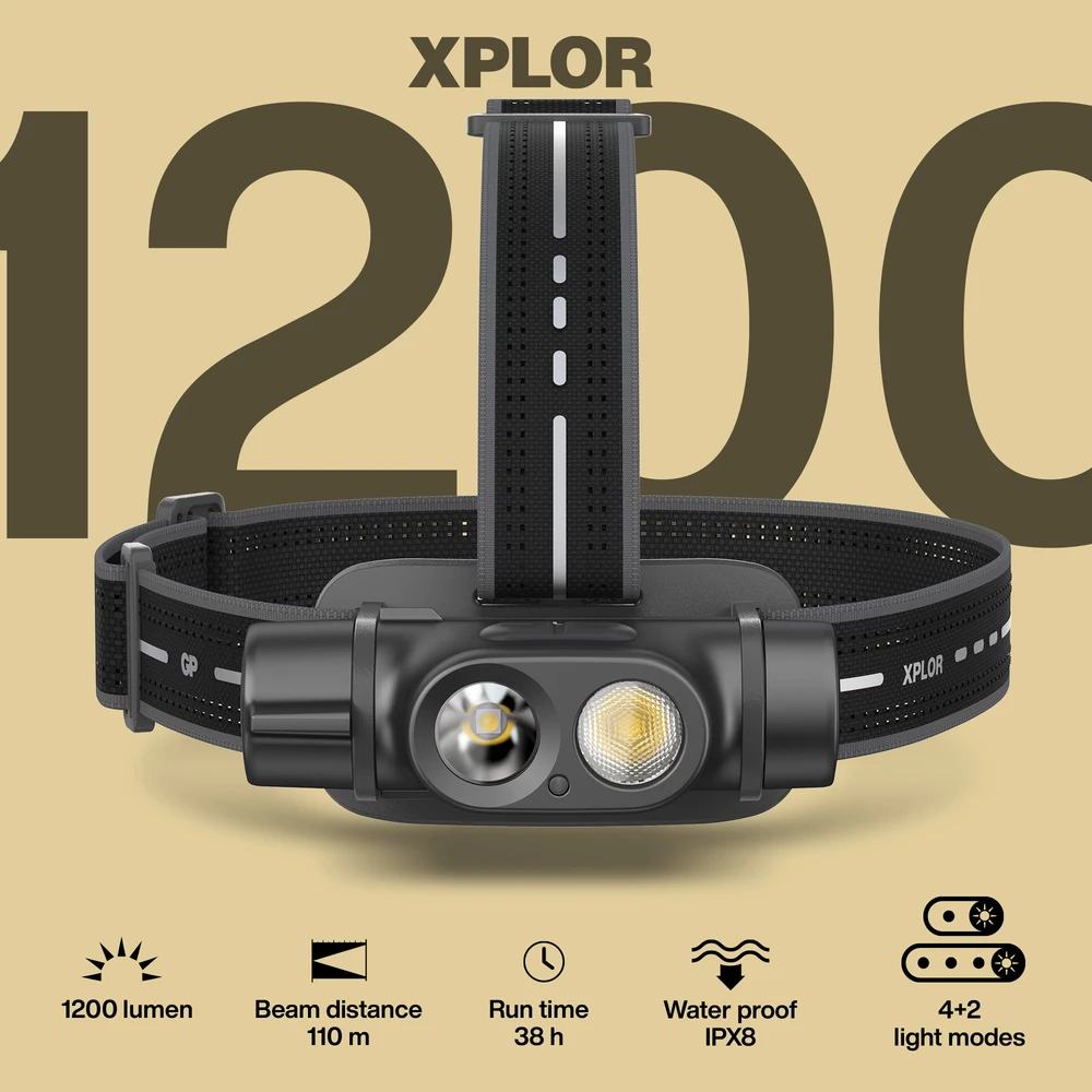 GP XPLOR PHR19 -otsalamppu on lamppu sinulle, jolla on kovat vaatimukset. Sen kokonaiskirkkaus on 1200 lumenia, ja se valaisee pimeän helposti jopa 110 metrin päähän. Kahden linssin yhdistelmän avulla voit ohjata valonheitto- ja tarkennustoimintoja erikseen ja luoda optimaalisen valon kuhunkin tehtävään. 100 asteen laajalla valokulmalla ja 160 asteen pystysuuntaisella valaisimen pään kallistusmahdollisuudella voit helposti säätää valokuviota, vaikka sinulla olisi kypärä tai lippis päässäsi. Otsalamppu on IPX8-luokiteltu, mikä tarkoittaa, että se on vedenpitävä myös paineen alaisena, joten sen voi upottaa veteen ilman vahinkoa. Valaisimen pää on valmistettu kokonaan kestävästä alumiinista, ja se on erittäin kestävä, joten se kestää iskuja ja putoamisia jopa 1,5 metristä. Akun kesto on jopa 38 tuntia, joten tämä on täydellinen otsalamppu niille, jotka rakastavat erämaata tai tekevät vaativaa työtä. Tässä mahdollisimman käyttäjäystävälliseksi suunnitellussa otsalampussa on akun varaustason osoittava virran merkkivalo, aktiivinen ylikuumenemissuoja ja lukitustoiminto, joka estää lampun kytkemisen päälle vahingossa. Vaikka GP XPLOR PHR19:ssä on ladattava litiumioniakku, se on yhteensopiva sekä ladattavien että kertakäyttöisten akkujen kanssa. Näin varmistat, ettei paristo koskaan lopu kesken eikä lamppua voi käyttää. Mukana tulee kestävä kypäräkiinnike, jonka avulla valo voidaan kiinnittää polkupyörä-, kiipeily- tai työkypärään.