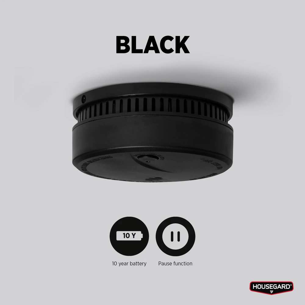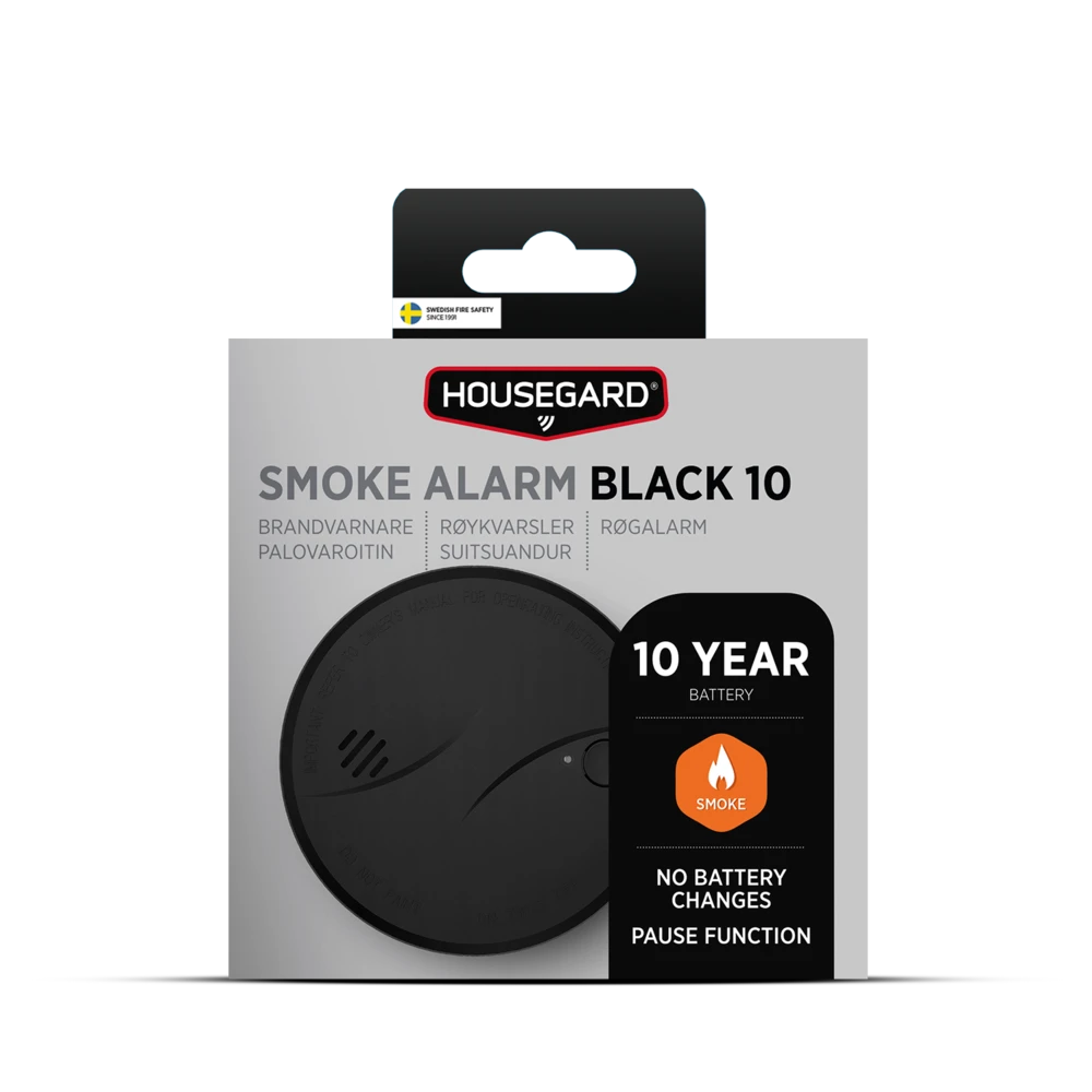 Housegard Black on tyylikäs, mattamusta palovaroitin, joka yhdistää muotoilun ja turvallisuuden. Sisäänrakennetun 10 vuoden pariston ansiosta sinun ei tarvitse huolehtia paristonvaihdosta. Sopii sinulle, joka haluat mustan palovaroittimen, joka sulautuu moderniin sisustukseen.