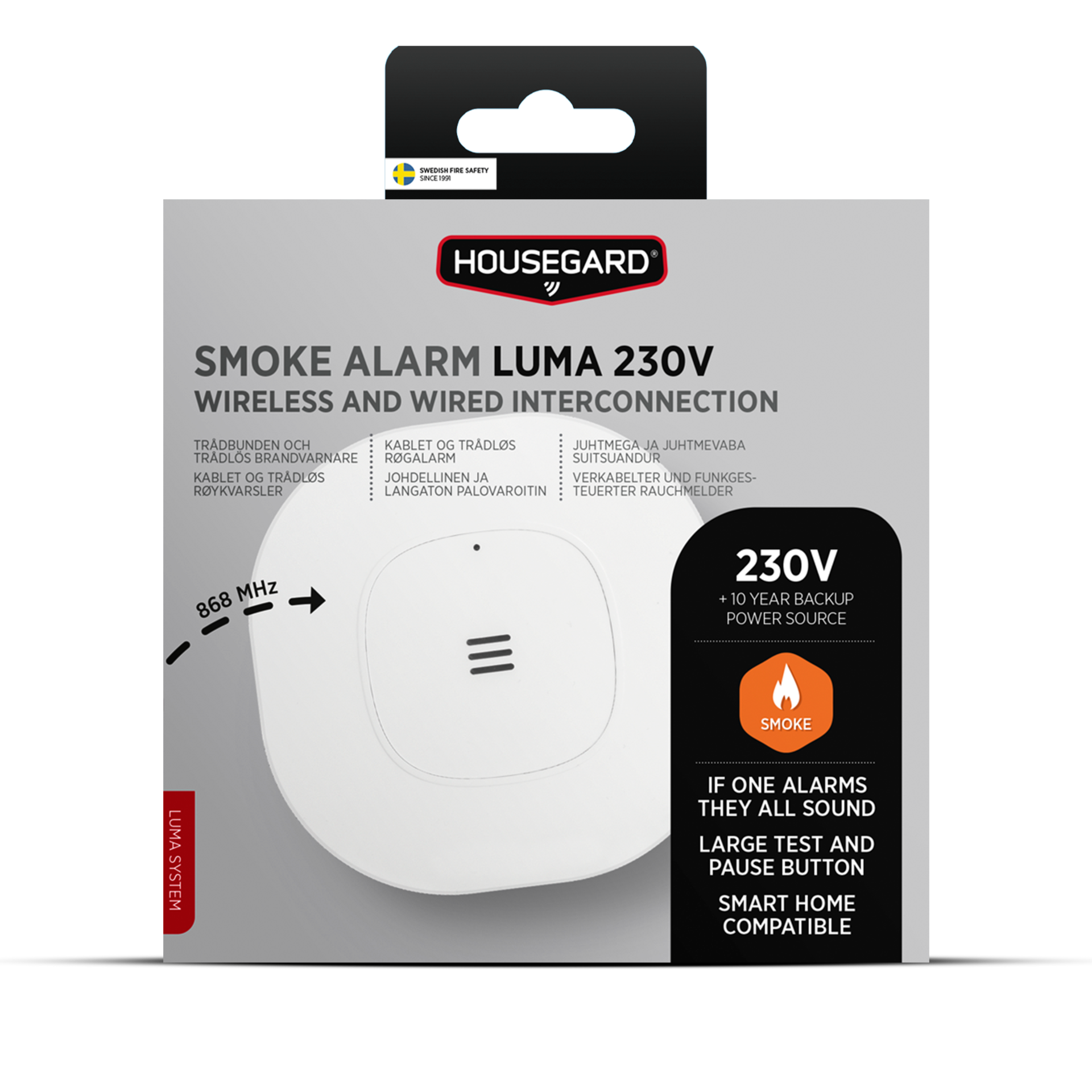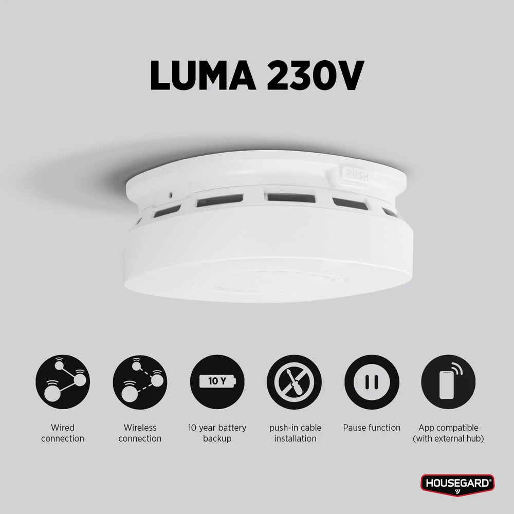 Housegard Luma 230V palovaroitin, sis. 10 vuoden paristo