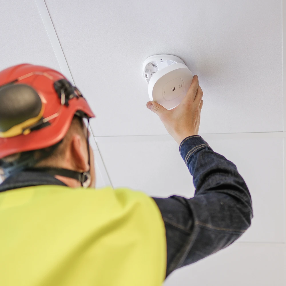 230V-palovaroitin kiinteään asennukseen optisella tunnistuksella, 10 vuoden varaparistolla ja langattomalla sekä kaapeloidulla sarjakytkennällä.