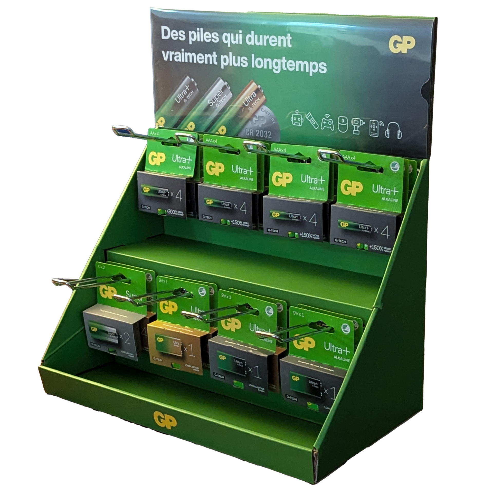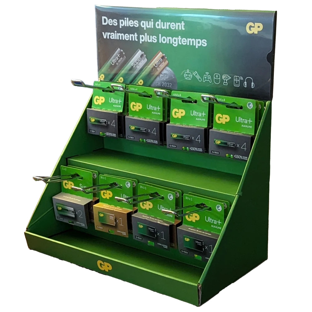 Ce présentoir de comptoir attire le regard grâce à son identité verte emblématique et booste vos ventes dès son installation.