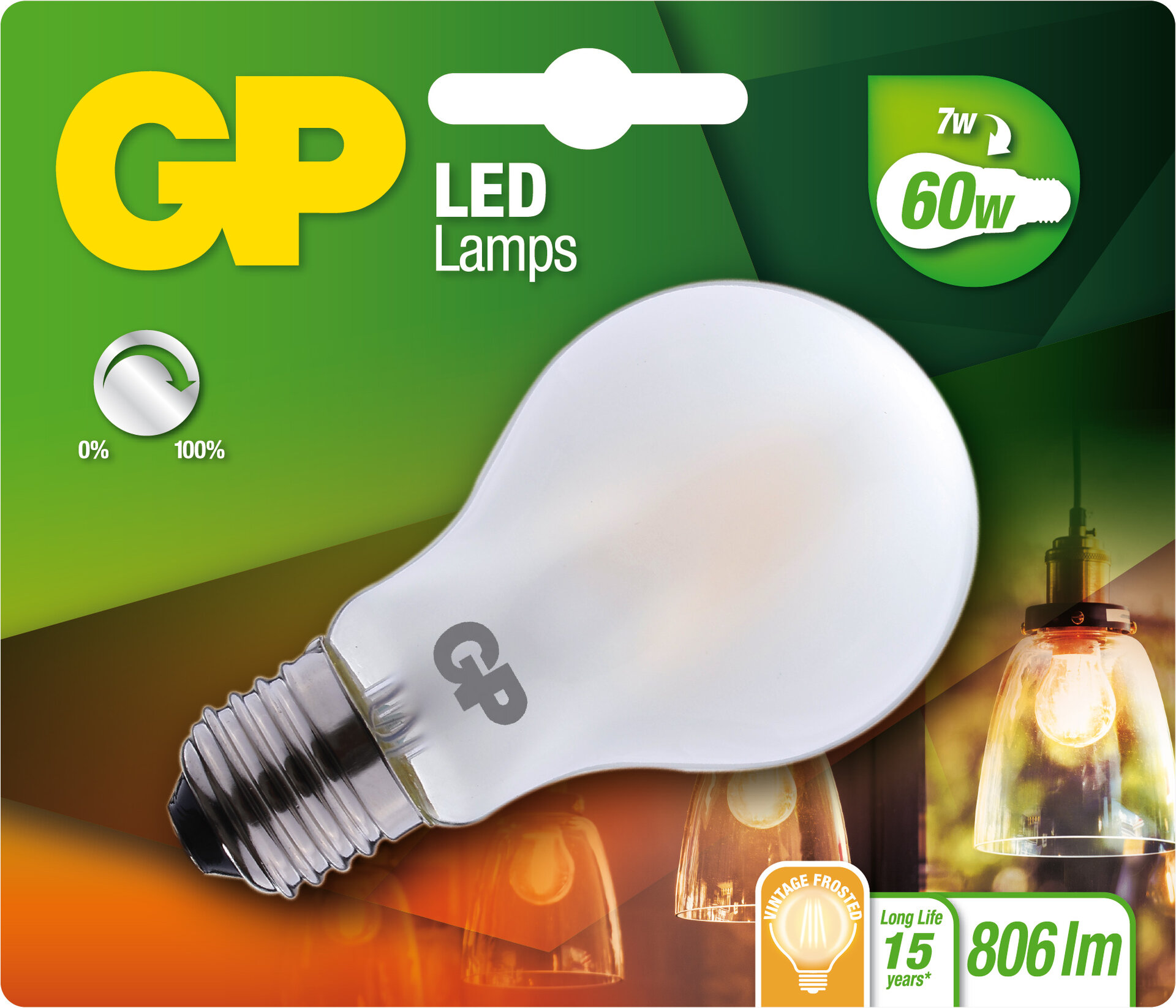 GP LED Filament ampoule, E27, DIM, 7W (60W), 820lm, 080480-LDCE1