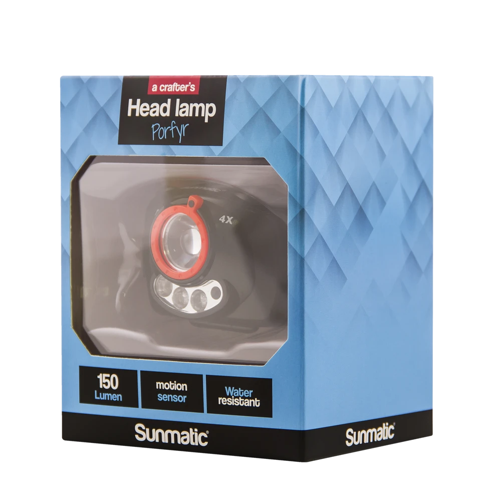 Porfyr est une lampe frontale intelligente avec détecteur de mouvement pour une utilisation mains libres. La fonction de gradation polyvalente vous permet de régler la luminosité selon les besoins, ce qui optimise la durée de vie des piles.