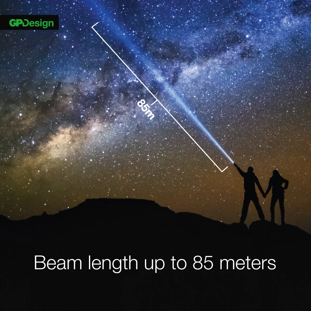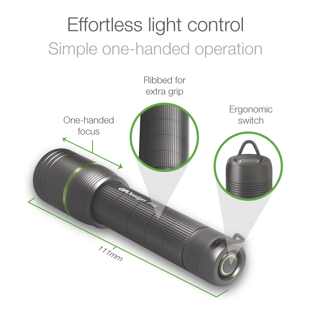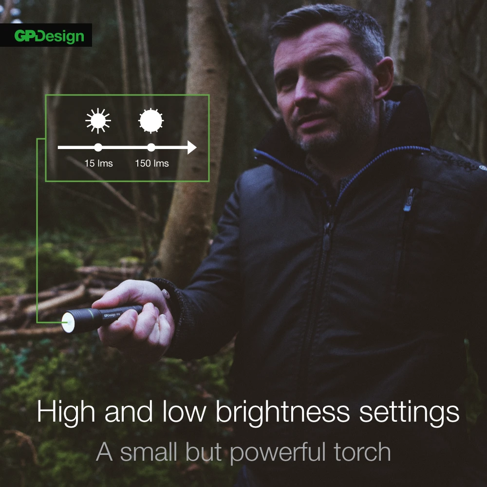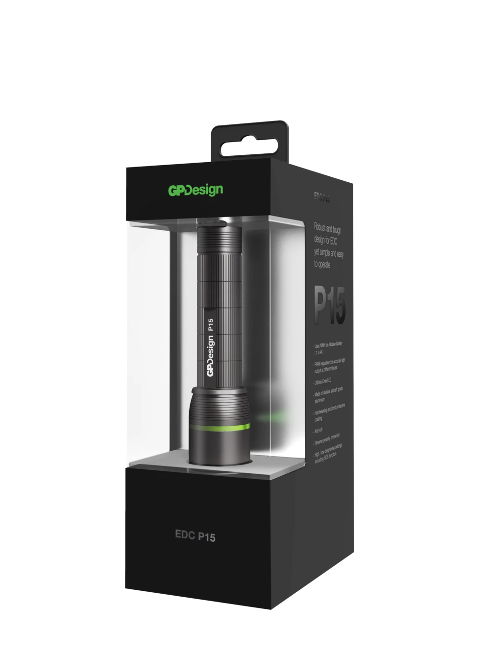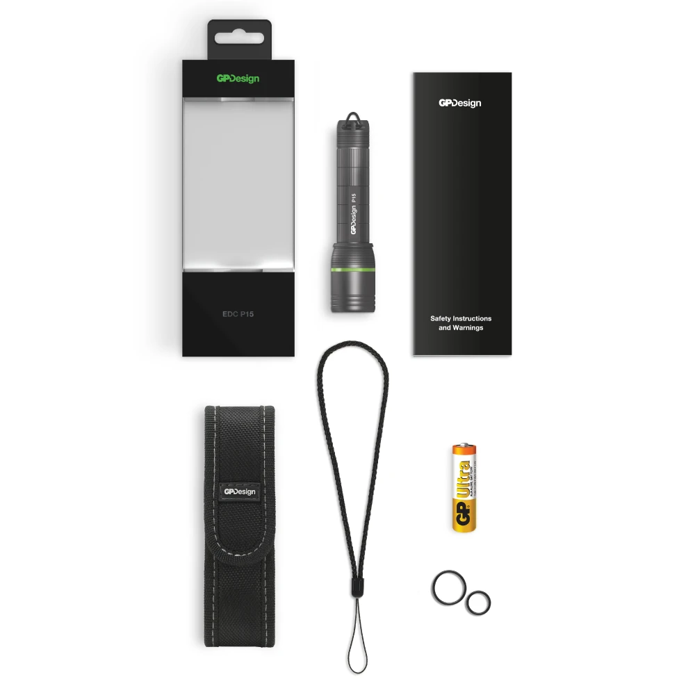 La lampe est équipée d’une dragonne pratique qui fait aussi office de fonction antiroulement quand vous la posez à côté de vous. C’est l’utilisateur qui est au cœur de la collection de lampes de poche GP Design. Grâce à leur fonctionnalité bien pensée et à leur haute qualité, ces lampes de poche sont conçues pour les activités quotidiennes, l’aventure et le travail qui exigent beaucoup en termes de performance et de durabilité de la source lumineuse. Toutes les lampes GP Design sont en aluminium anodisé de qualité aéronautique, ce qui les rend extrêmement solides, résistantes aux chocs et adaptées pour bien fonctionner dans de nombreuses situations différentes, même dans des environnements industriels et professionnels difficiles. Elles possèdent des propriétés de résistance aux fortes projections d’eau (IPX4), ce qui rend appropriée leur utilisation sous la pluie, mais pas immergées dans l’eau. À titre de sécurité supplémentaire, toutes les lampes ont une protection contre les inversions de polarité, qui empêche la lampe d’être endommagée si les piles sont mal installées ; les modèles rechargeables sont alimentés par des piles ion-lithium de qualité avec des fonctionnalités de sécurité intégrées pour protéger la batterie et la lampe contre la surchauffe et la surcharge.