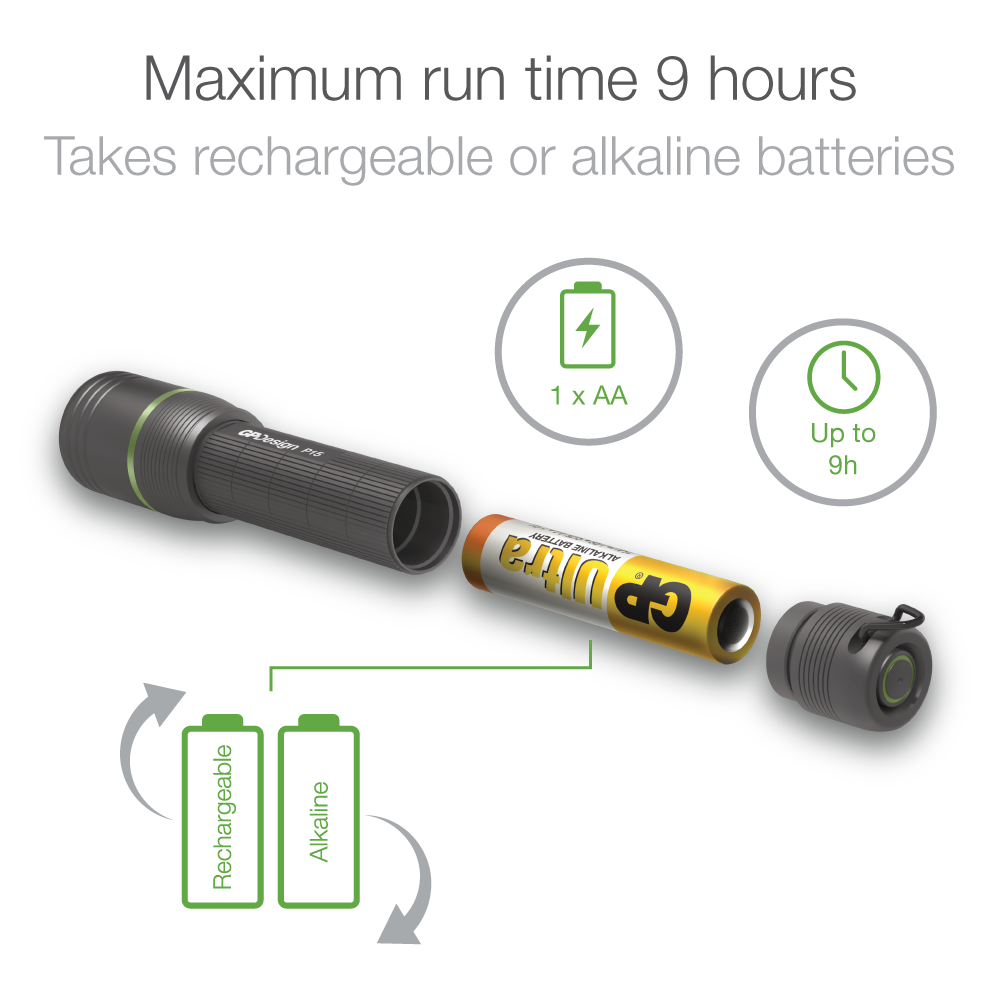 - Alimentée par 1 pile AA (jetable ou rechargeable)
