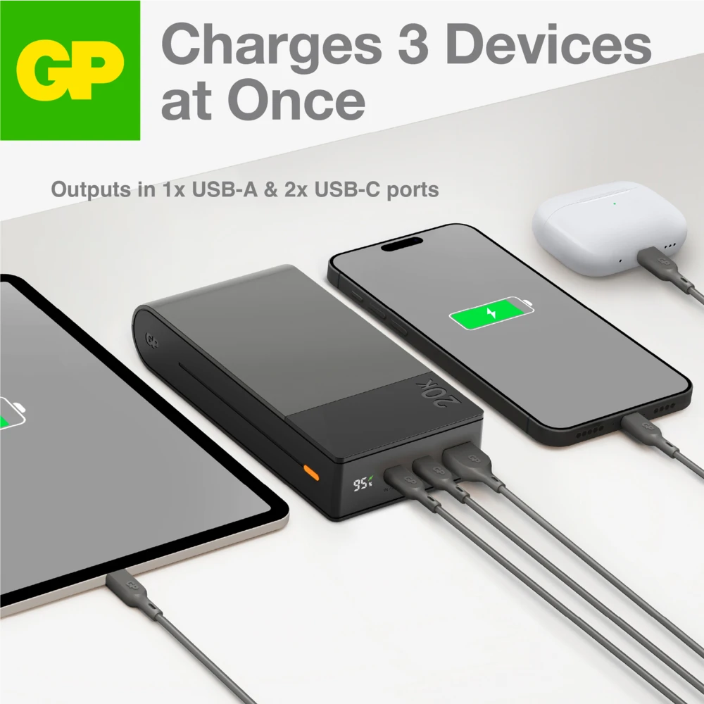 Laddar din telefon till mer än 58% på bara 30 minuter.* Med en laddningshastighet på upp till 22,5W kan du ladda tre enheter på samma gång. Laddaren stöder PD 3.0-, QC 3.0-, PPS-, SCP-, FCP- och AFC-snabbladdning. Den har dessutom både USB-A och USB-C.