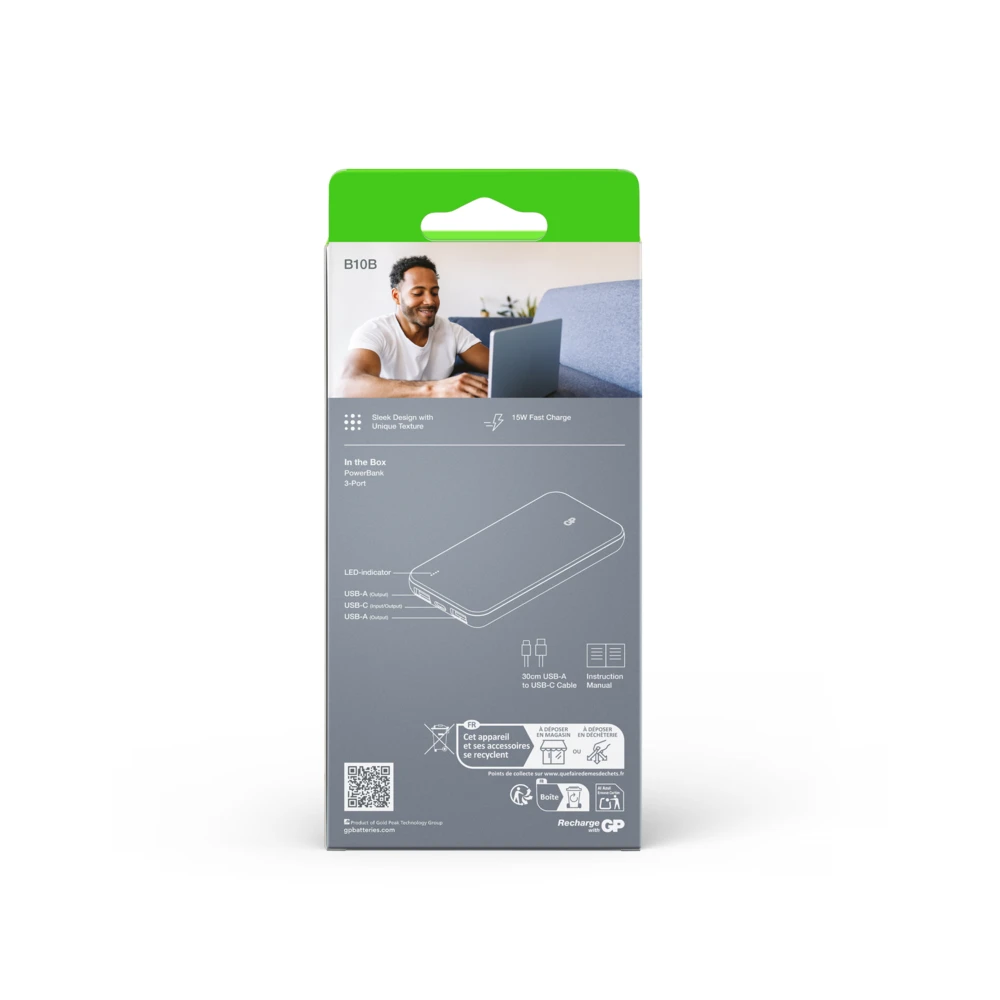 Ladda dina enheter med stil med GP Plus Series Powerbank 10 000 mAh. Den har en elegant design med ett unikt mönster och en fin finish. Med snabb laddning som ger upp till 50 % kapacitet på endast 35 minuter* och möjligheten att ladda upp till tre enheter samtidigt, blir det enklare att hålla igång alla dina enheter. Tillägg av 8 lager säkerhetsskydd garanterar en trygg och pålitlig laddning. Den är både hållbar och stilren – perfekt för de dagar när du behöver extra kraft till dina enheter.