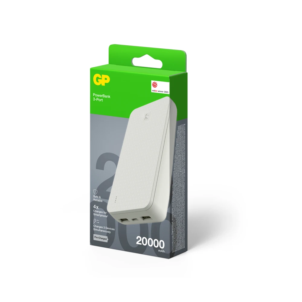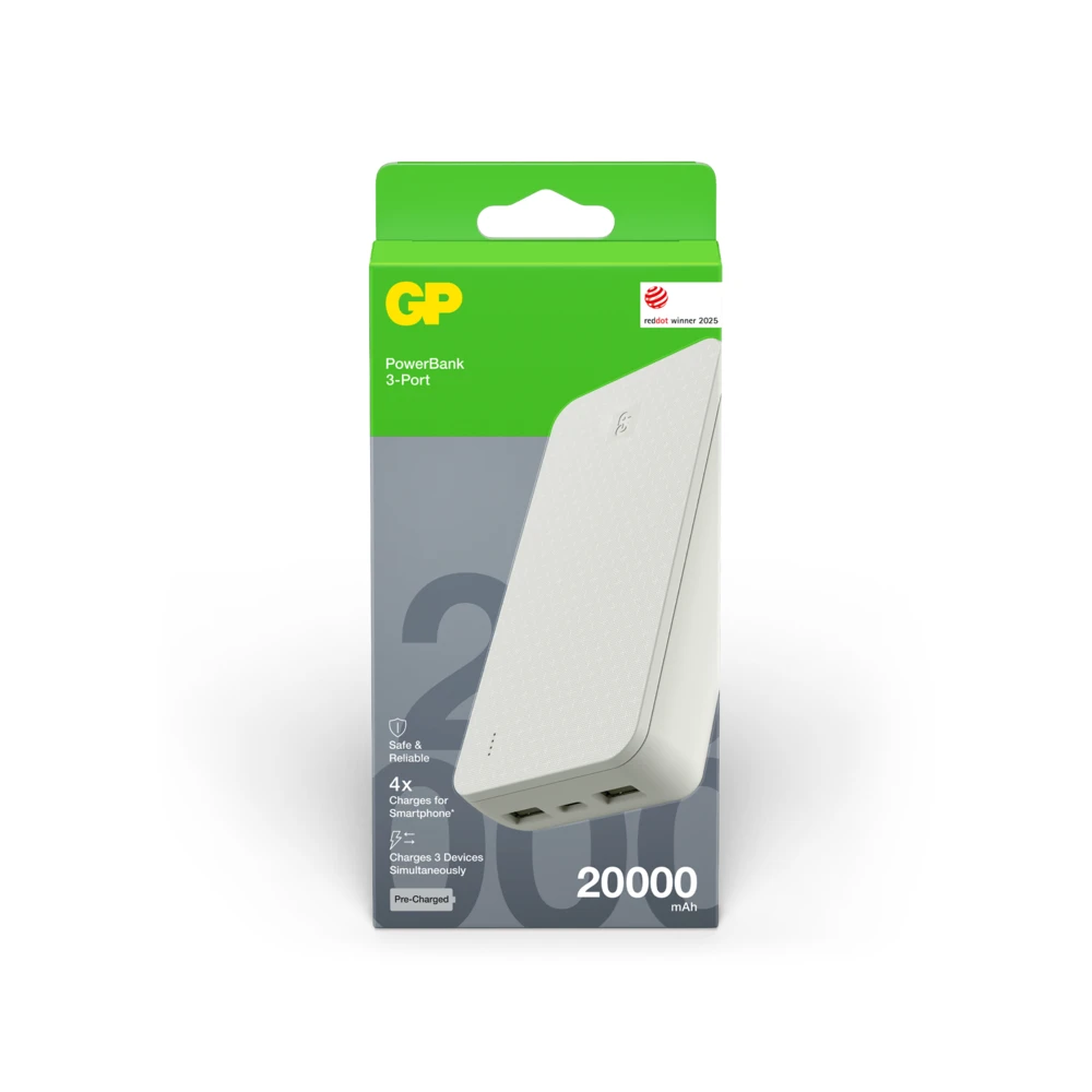 Ladda 3 enheter samtidigt – Håll dig laddad enkelt med GP Plus Series Powerbank, som är designad för att ladda upp till tre enheter samtidigt. Perfekt för dig som är en tung användare – den laddar effektivt din smartphone, surfplatta, smartklocka, hörlurar och mycket mer