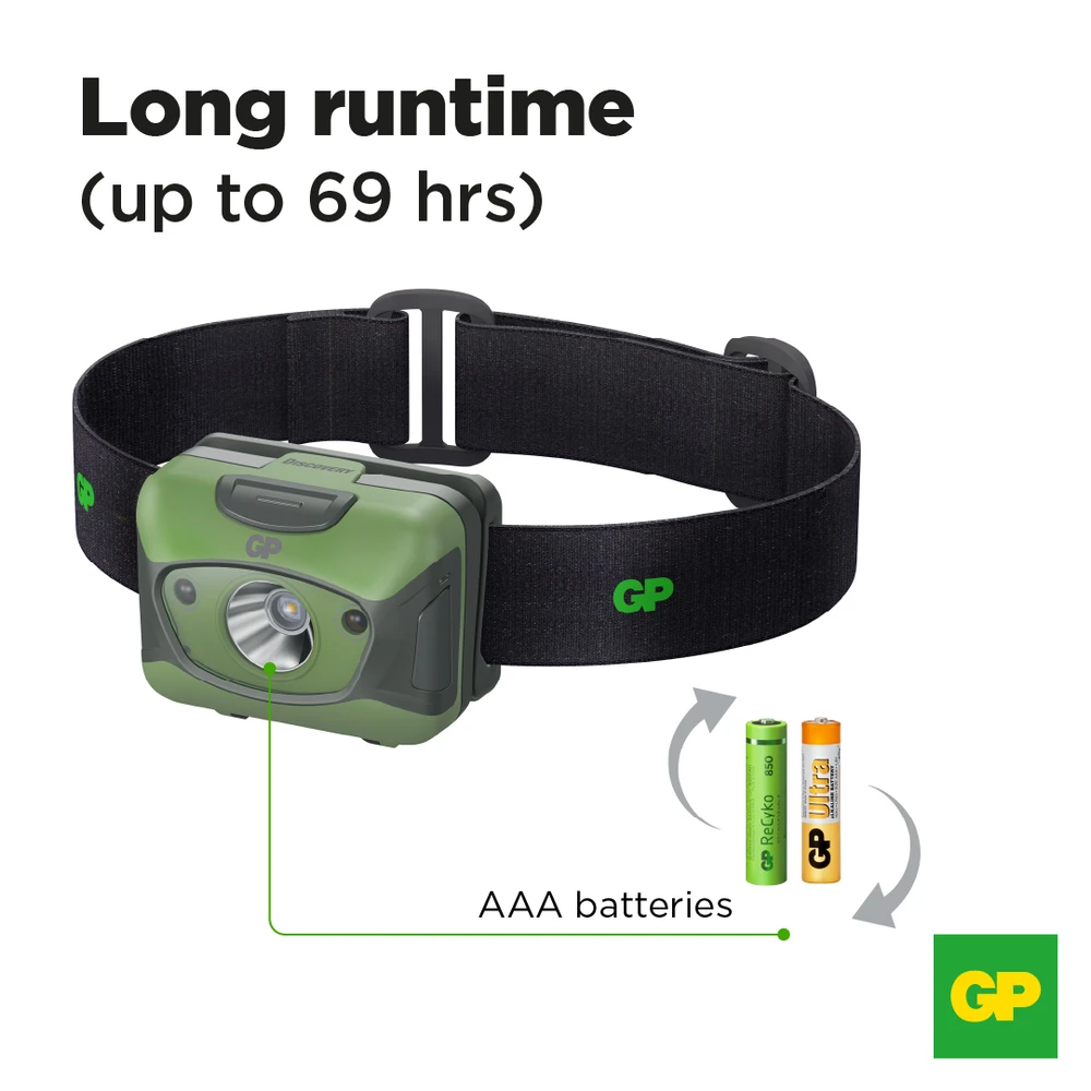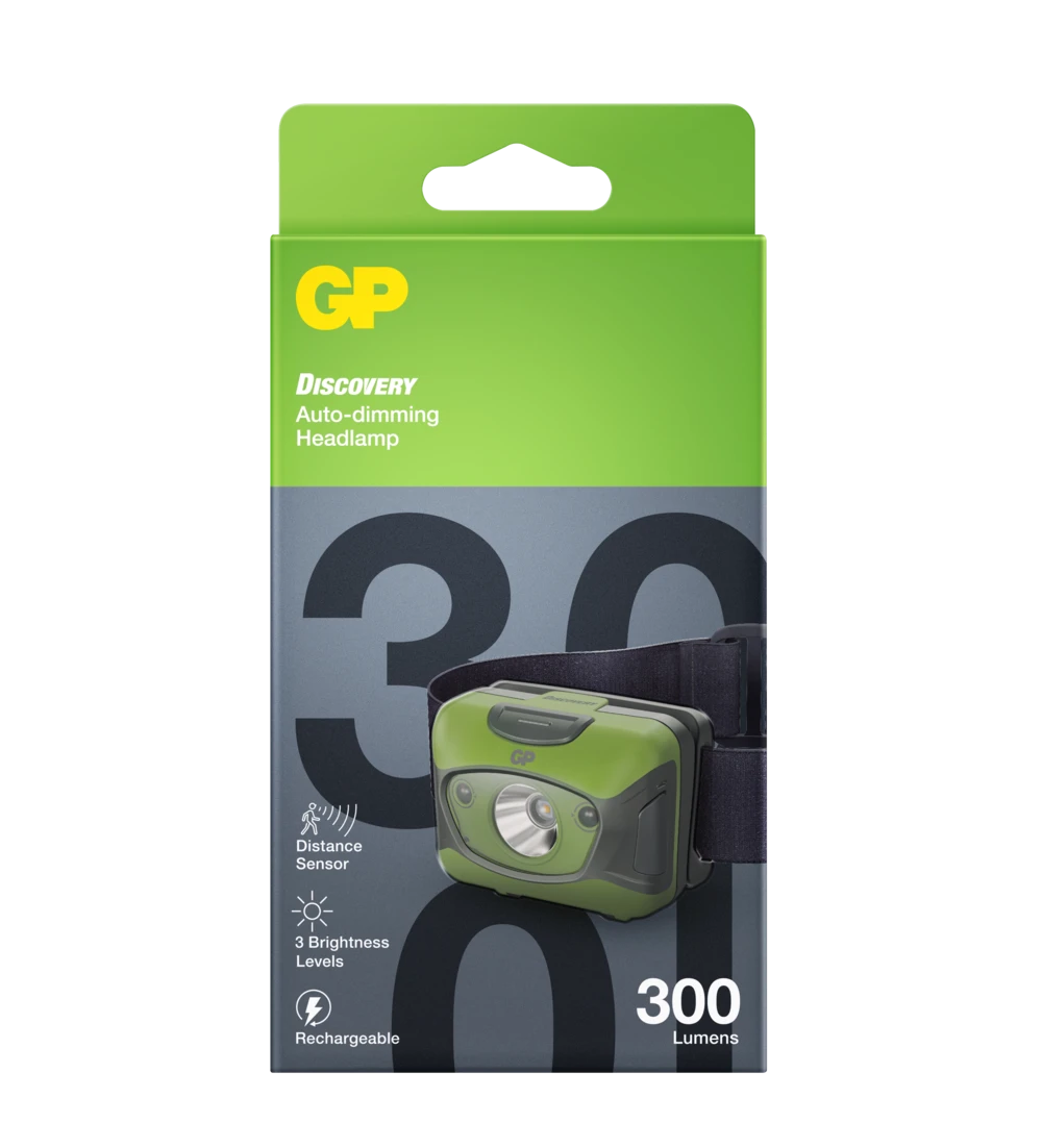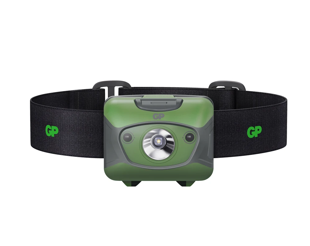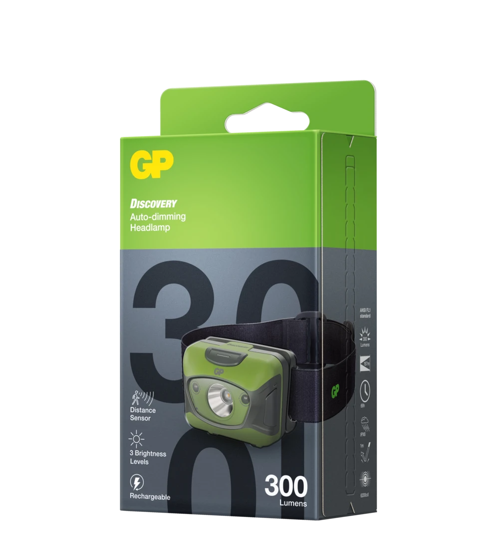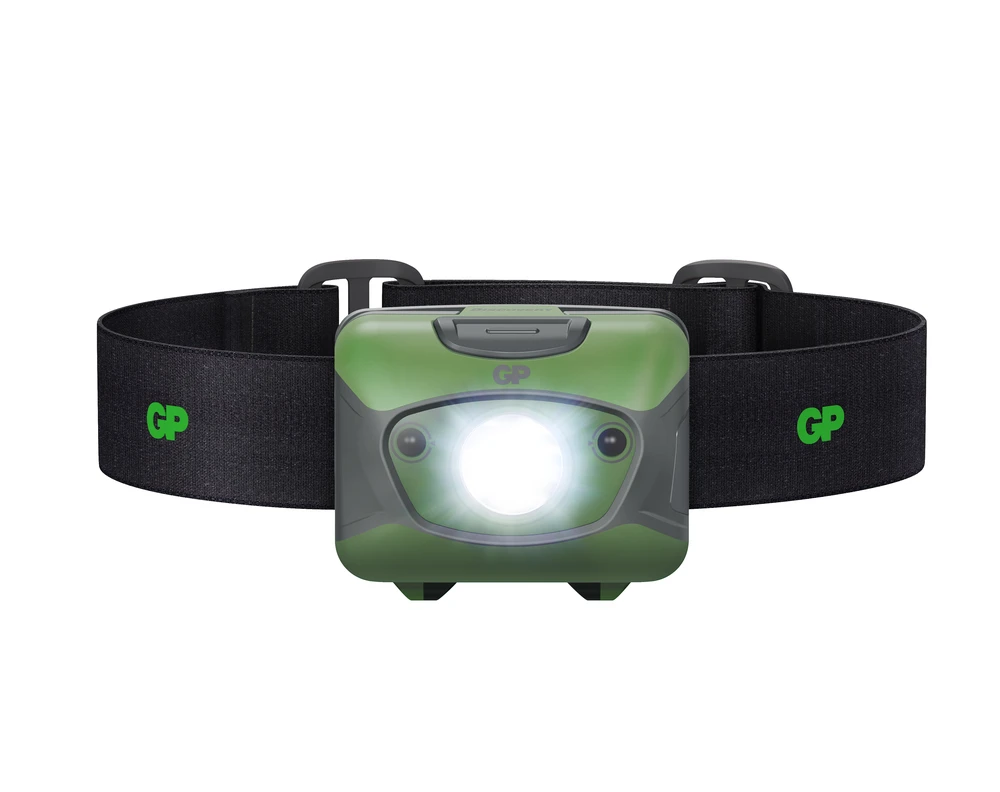 Ljusstark, laddningsbar pannlampa med sensor som automatiskt anpassar ljusstyrkan efter omgivningen.