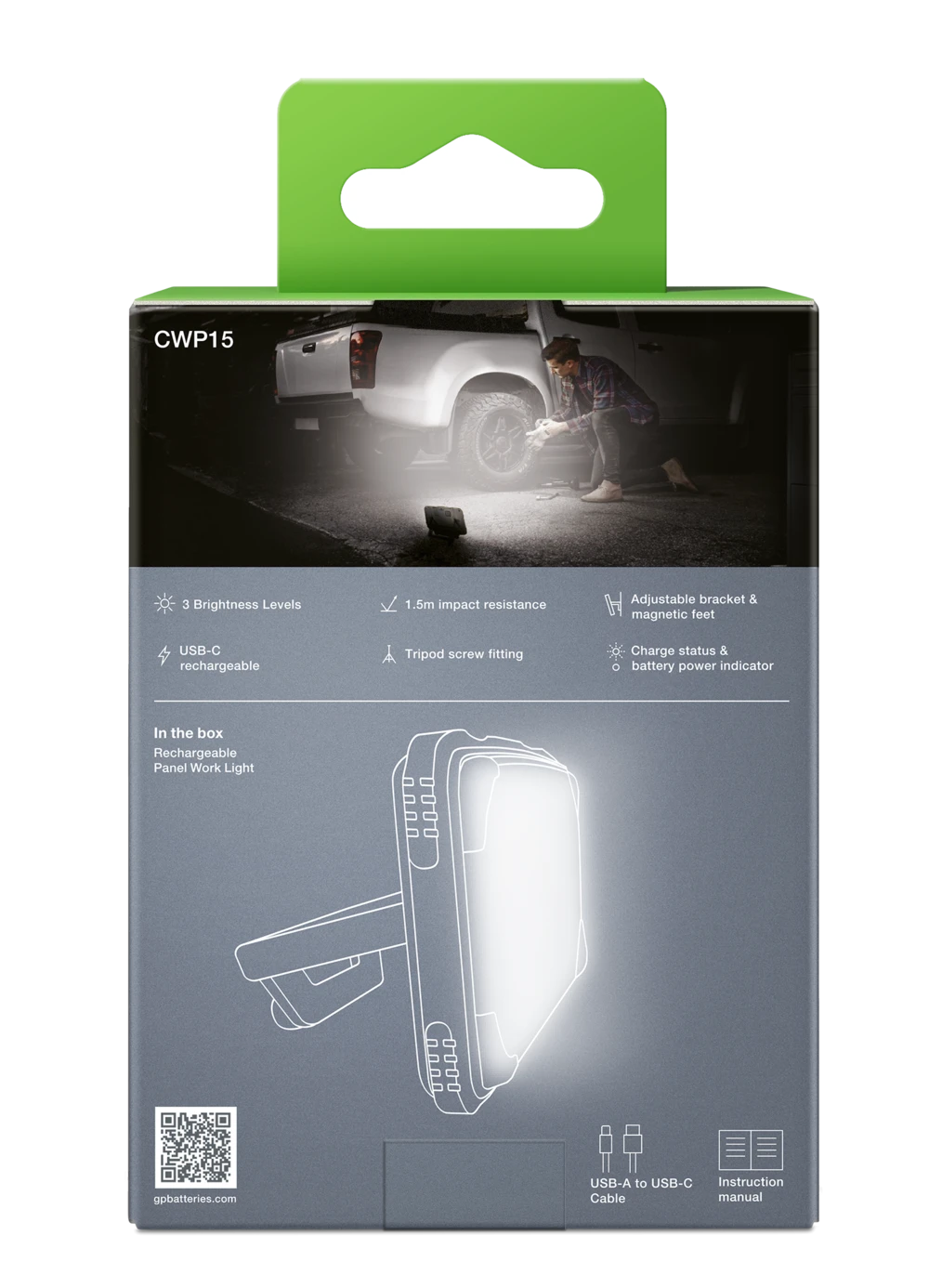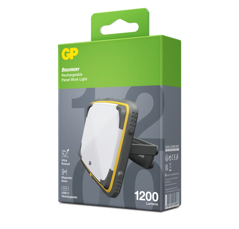 Arbetslampan GP Discovery Work CWP15 är lampan som gör att du aldrig behöver oroa dig för dålig belysning någonsin igen. Oavsett om du trivs bäst i vildmarken eller hemma i garaget kommer GP Discovery Work CWP15 att bli din bästa vän. Med sin lilla storlek men kraftfulla ljus skapas oändliga användningsområden. Den här multifunktionella panellampan är designad för att prestera oavsett förutsättningar. Med flertalet monteringsalternativ och tre olika ljusstyrkor lyser den enkelt upp både små och stora områden. Den är mycket vattentålig (IPX7-klassad) och har en robust design som skyddar lampan mot hårda stötar och fall på upp till 1,5 meter. För att klara av långa arbetspass och krävande äventyr är panellampan utrustad med ett kraftfullt inbyggt uppladdningsbart batteri med en batteritid på upp till 17,5 timmar.