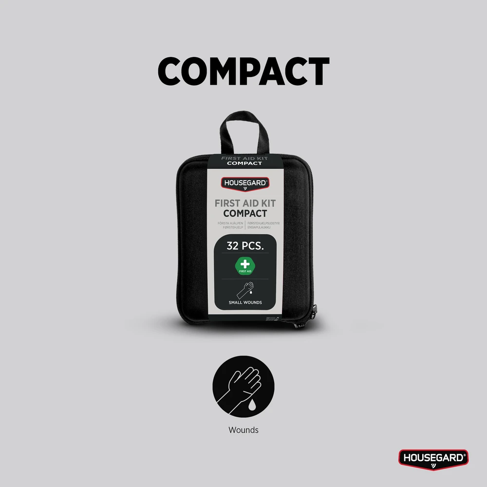 Housegard Compact är din perfekta följeslagare i hemmet, bilen eller på resan. Väskan är liten och lätt, men innehåller ändå det viktigaste för att behandla småsår och mindre skador. Den robusta designen gör den enkel att förvara och ta med, oavsett vart du ska.