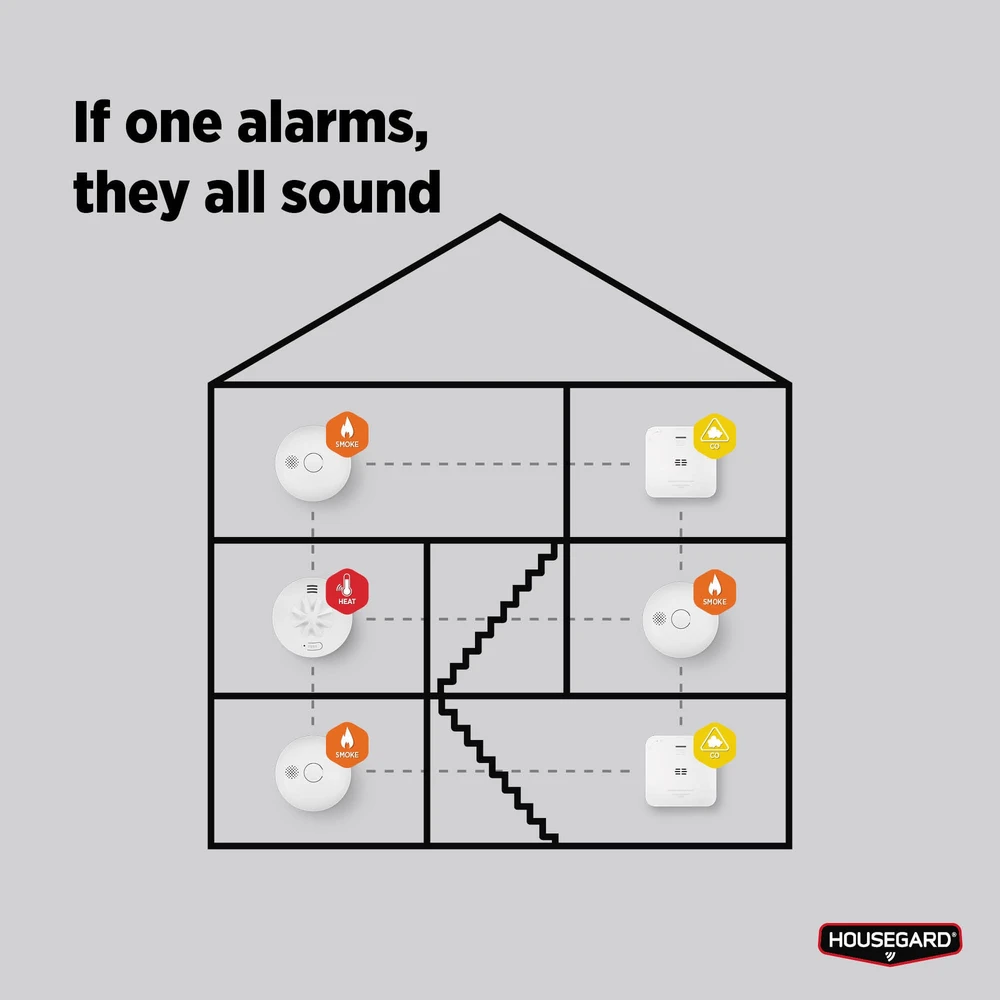 Alla produkter i LUMA-systemet kan enkelt kopplas samman trådlöst – med eller utan hub – så att du kan skapa ett komplett och sammankopplat trygghetssystem. Kombinera exempelvis med LUMA värmevarnare, brandvarnare eller kolmonoxidvarnare för ett skräddarsytt skydd i hela hemmet.