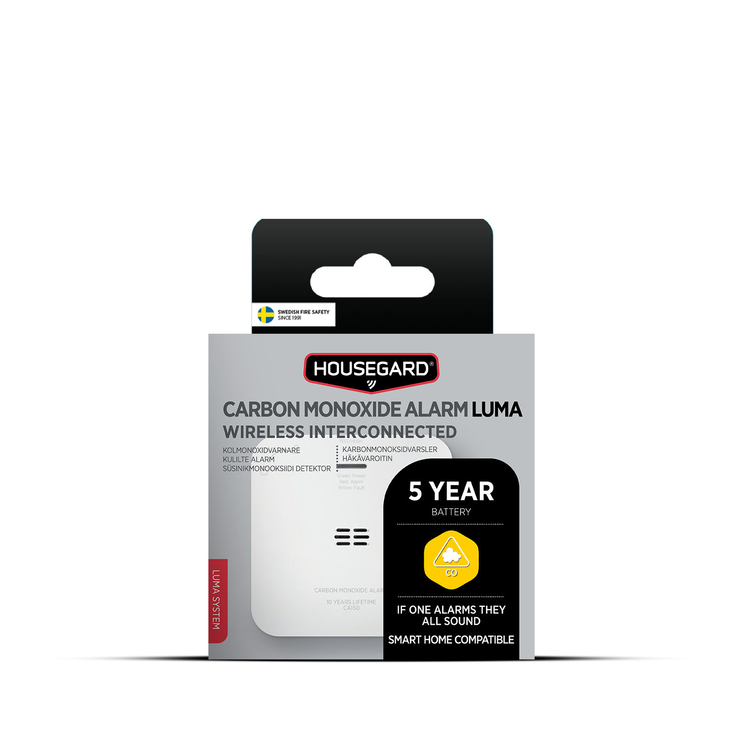 Larmar en, larmar alla – på så vis blir du varnad var du än befinner dig, kan kopplas samman trådlöst med upp till 40 andra varnare i vår LUMA-serie. LUMA kolmonoxidvarnare reagerar snabbt vid farliga nivåer av kolmonoxid och rekommenderas särskilt för rum med bränsledrivna värmekällor eller anordningar.