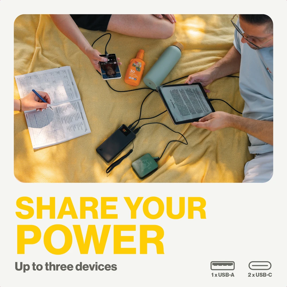 - Innehåller i lådan: Powerbank, manual, bärrem, 30 cm USB-C - USB-C-kabel