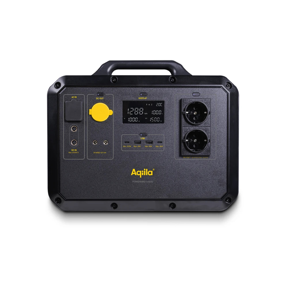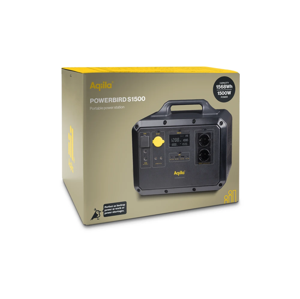 Aqiila Powerbird S1500 är en kapabel och kraftfull powerstation som låter dig ladda dina saker var du än är. Som en powerbank kan den ladda dina prylar och låta dig använda dina apparater när du är på språng. Perfekt som strömkälla i husvagnen, i skjulet eller om du behöver arbeta ute på fältet.
