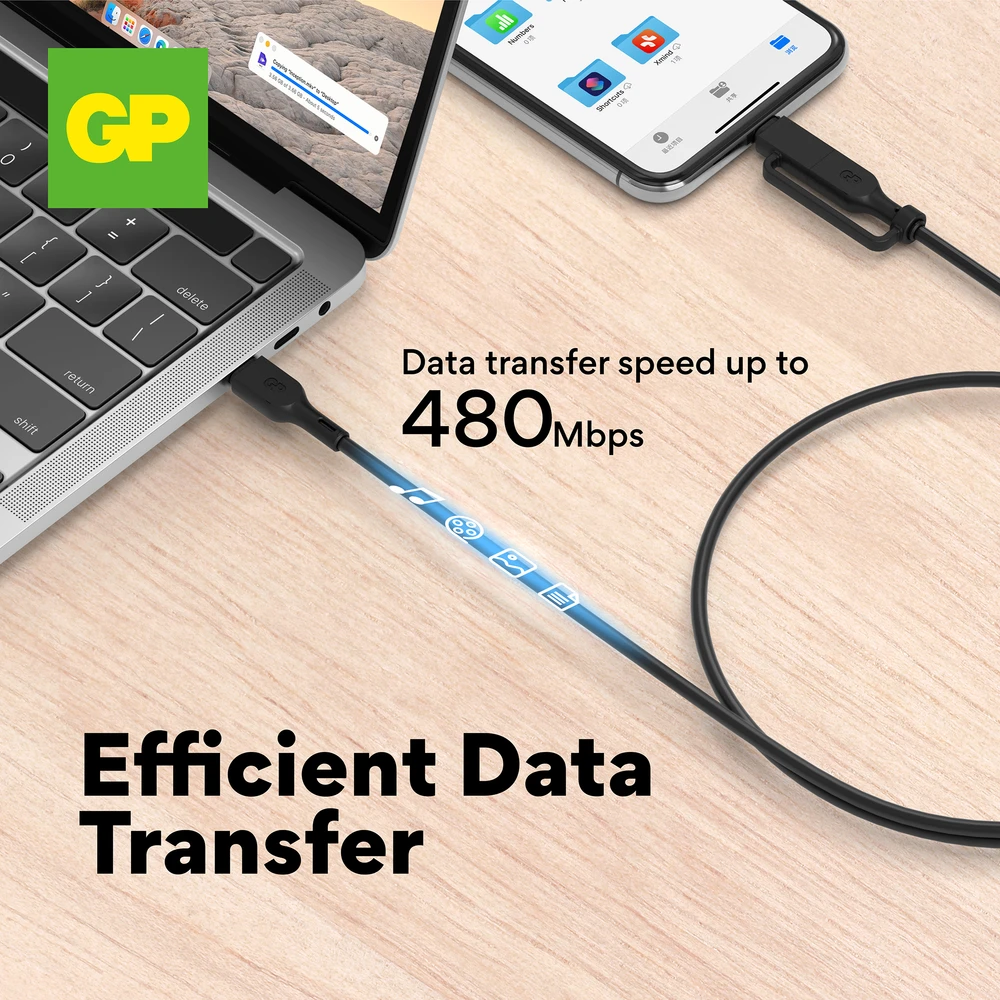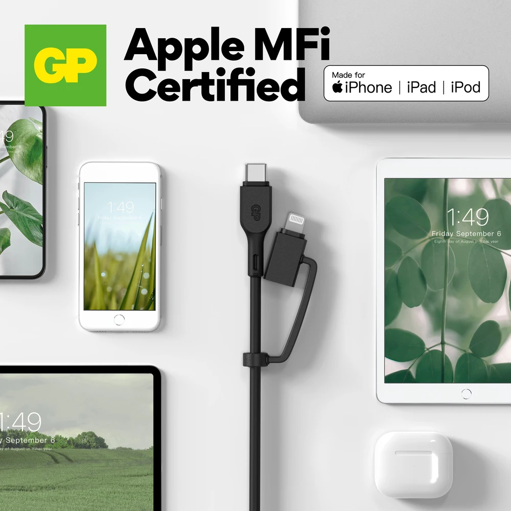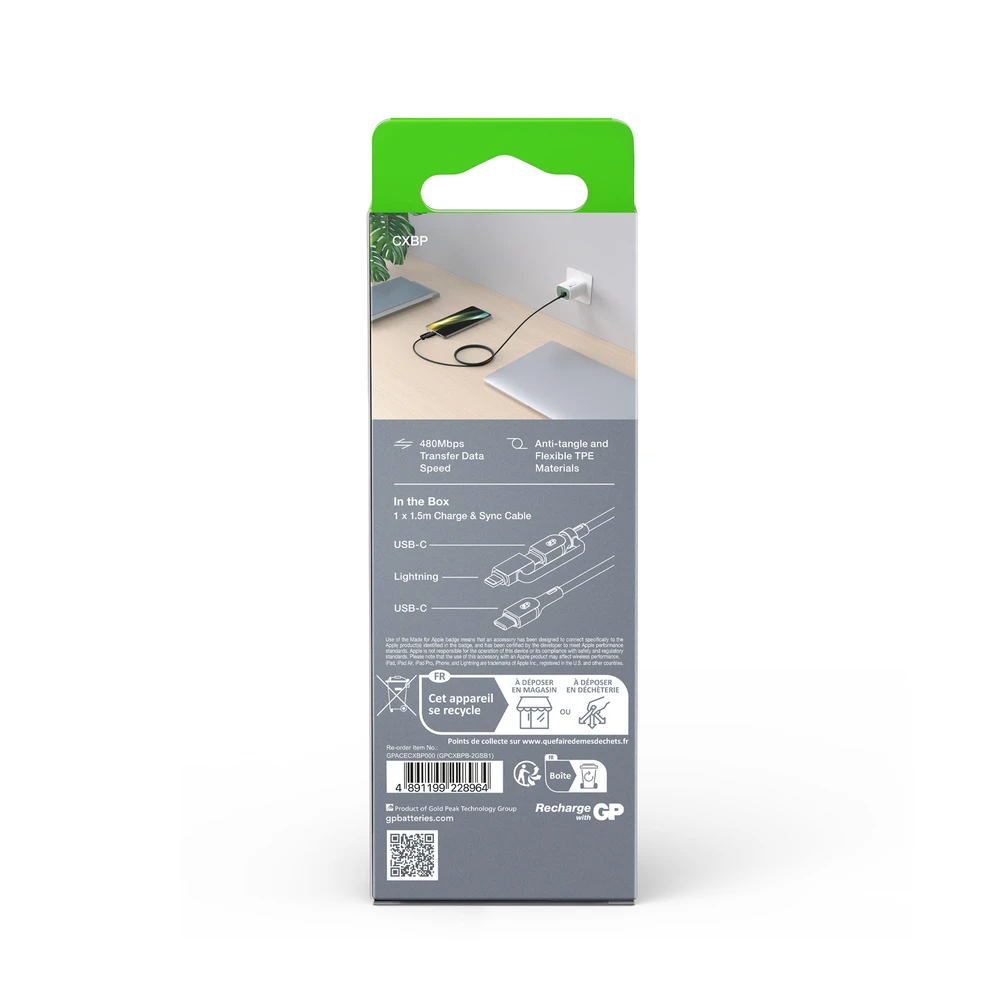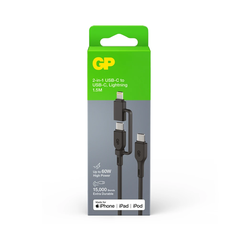 GP 2-in-1 kabel CXBP med USB-C till USB-C + Lightning adapter 60W 1,5 m
