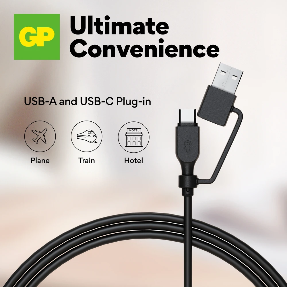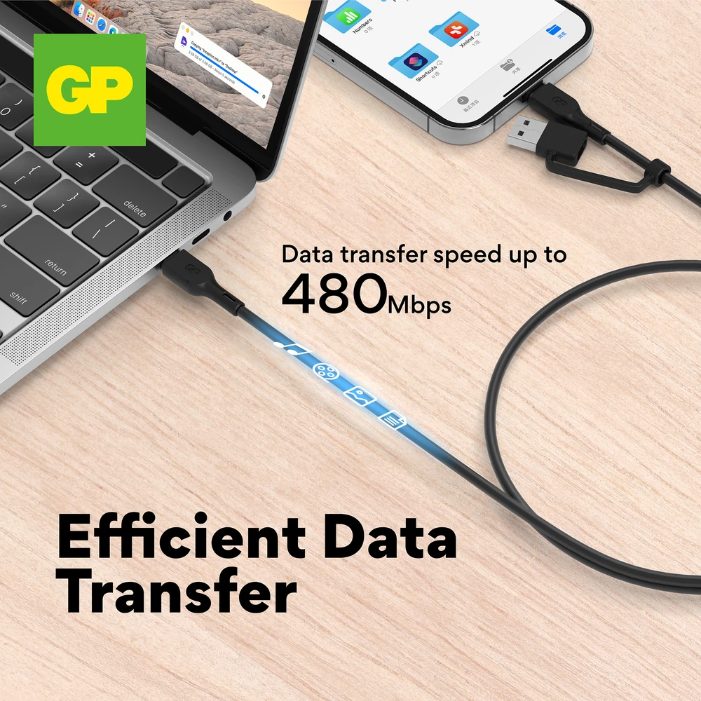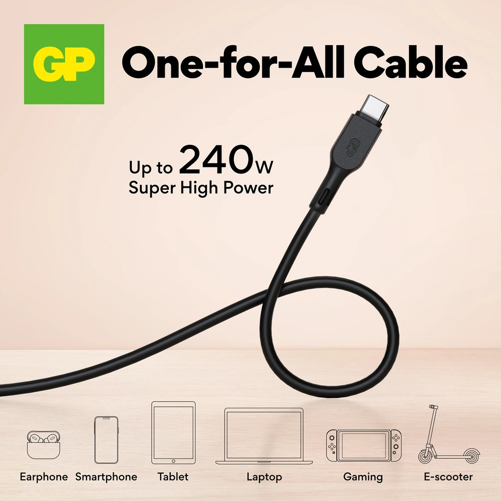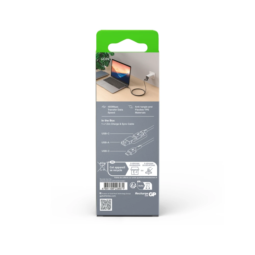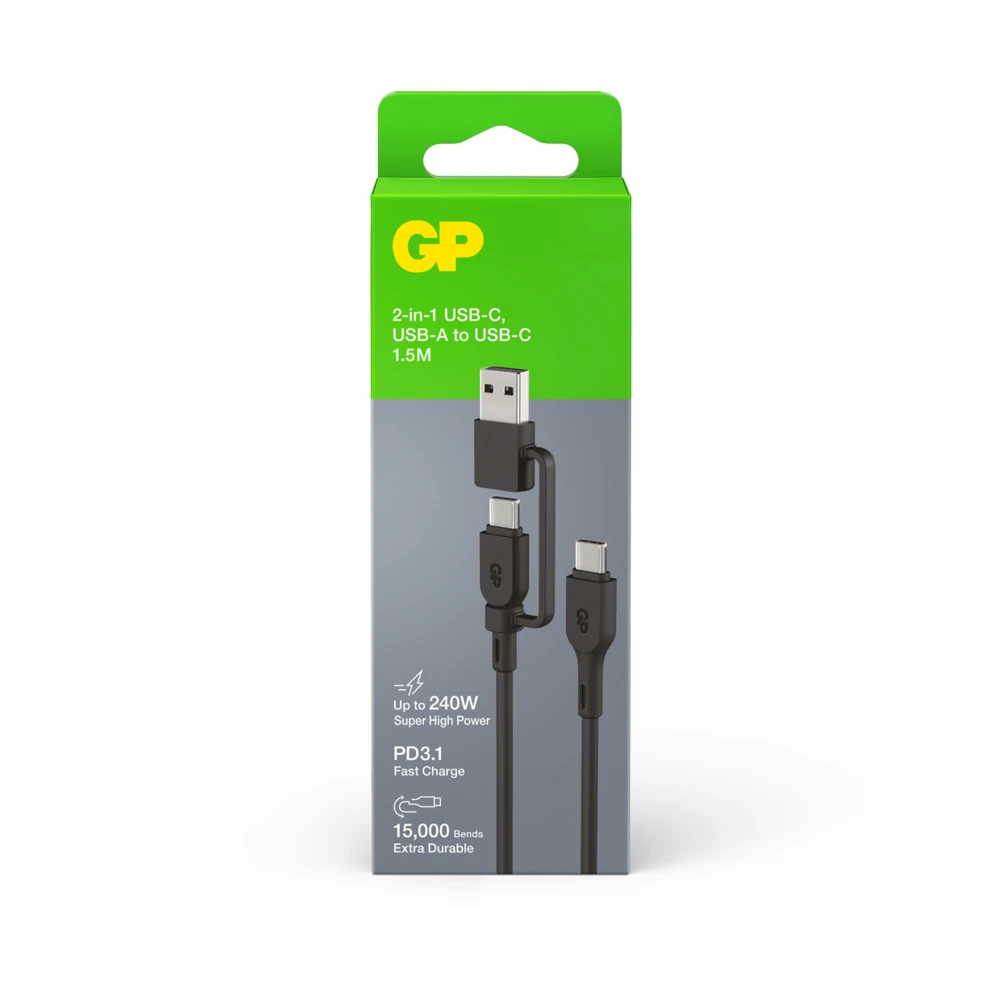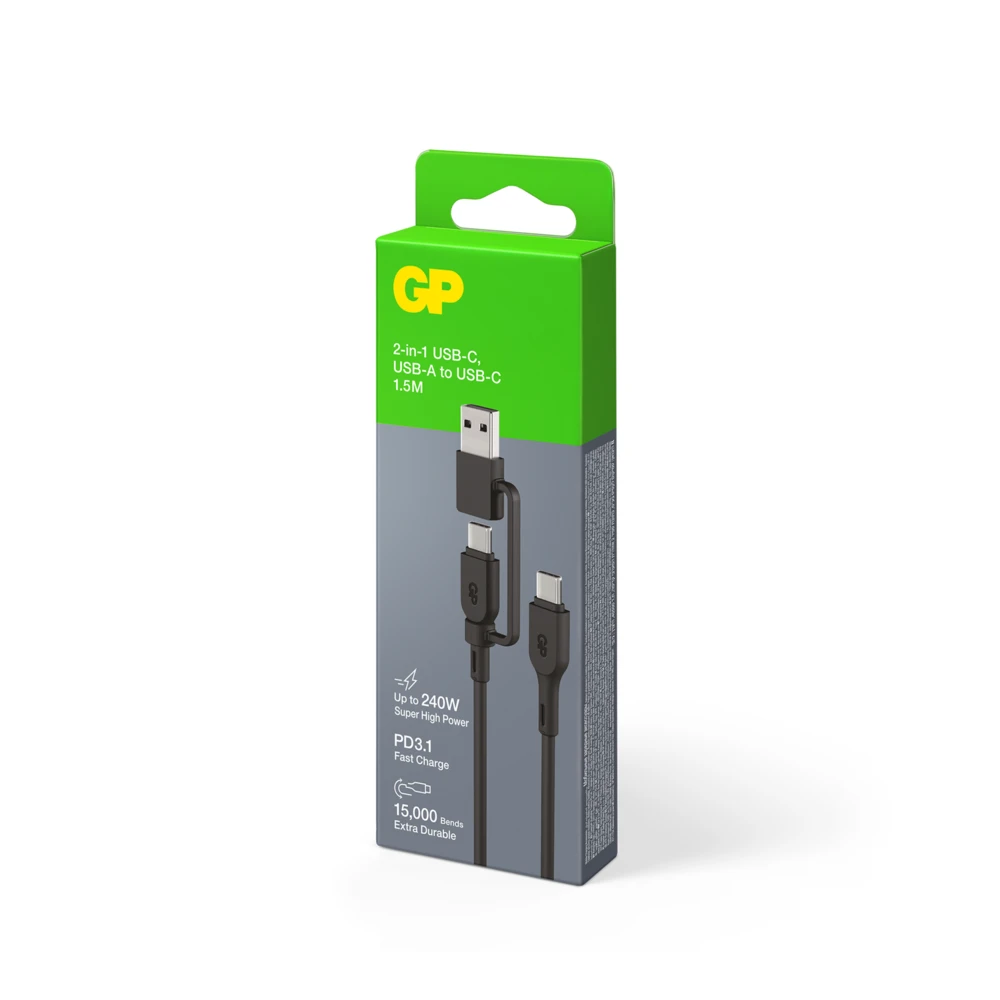 GP 2-in-1 USB-kabel CCBV med USB-C till C + USB-A adapter 240W 1,5m