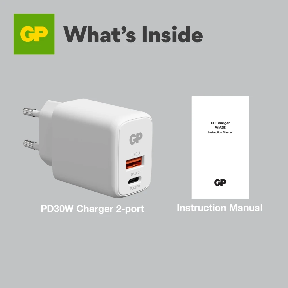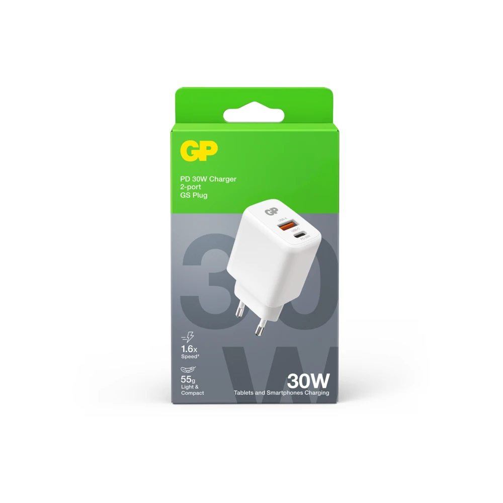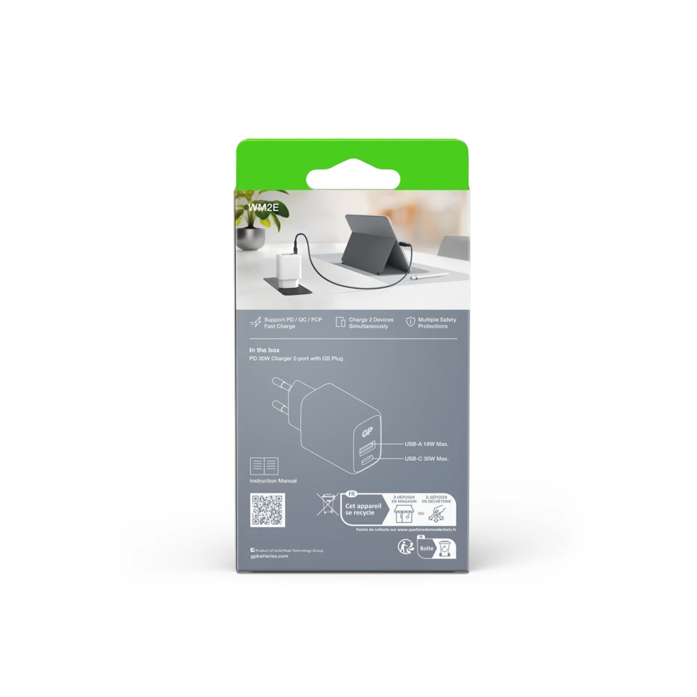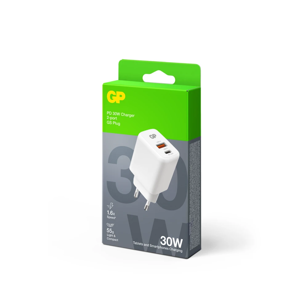 Med GP 30W Power Delivery (PD) väggladdare kan du ladda två enheter samtidigt. Den är så liten och kompakt att den får plats i fickan. Med ett pålitligt skyddssystem håller den dina enheter säkra under laddning.