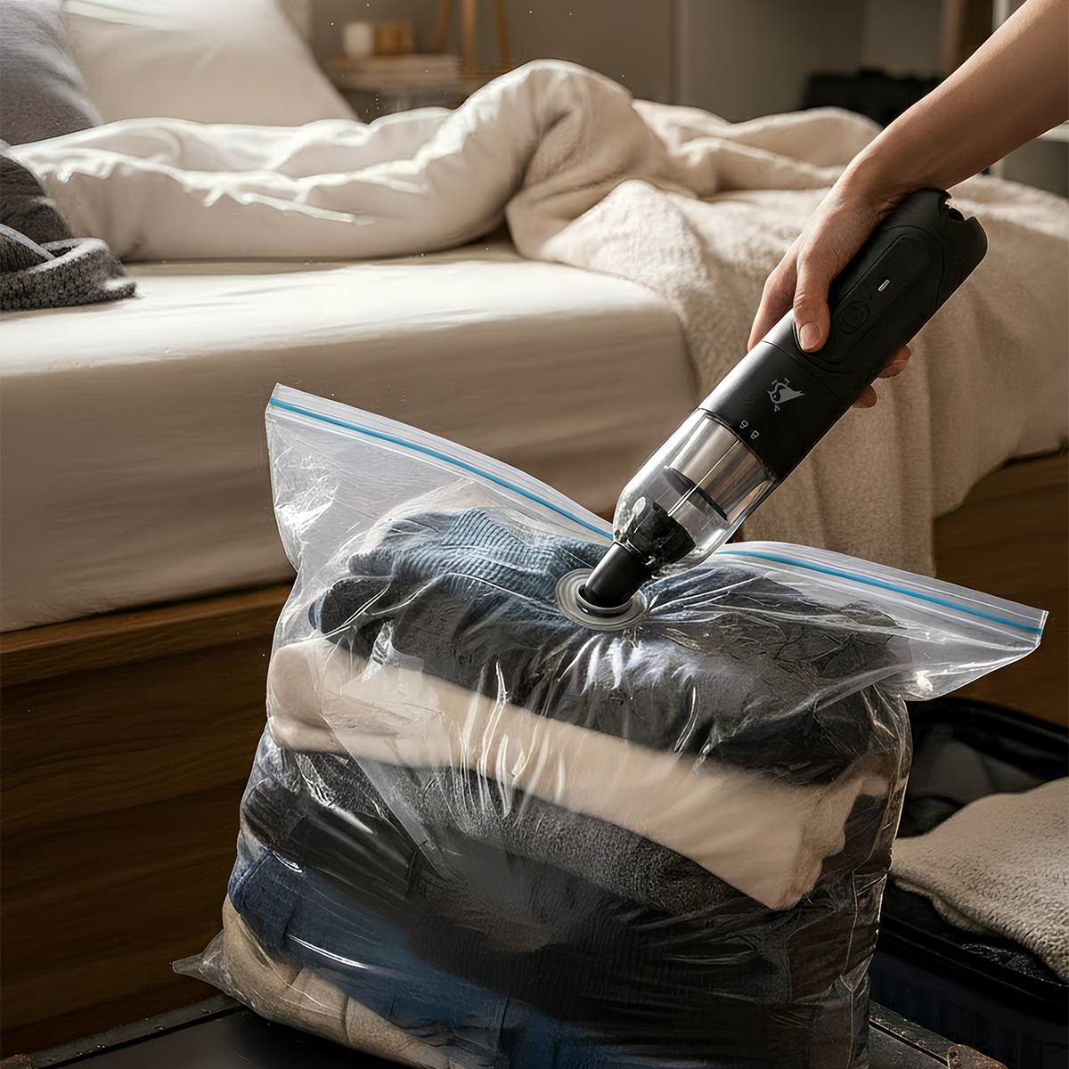 - Packa och förslut kläder, mat eller andra saker på några sekunder genom att ansluta munstycket till en vakuumpåse.