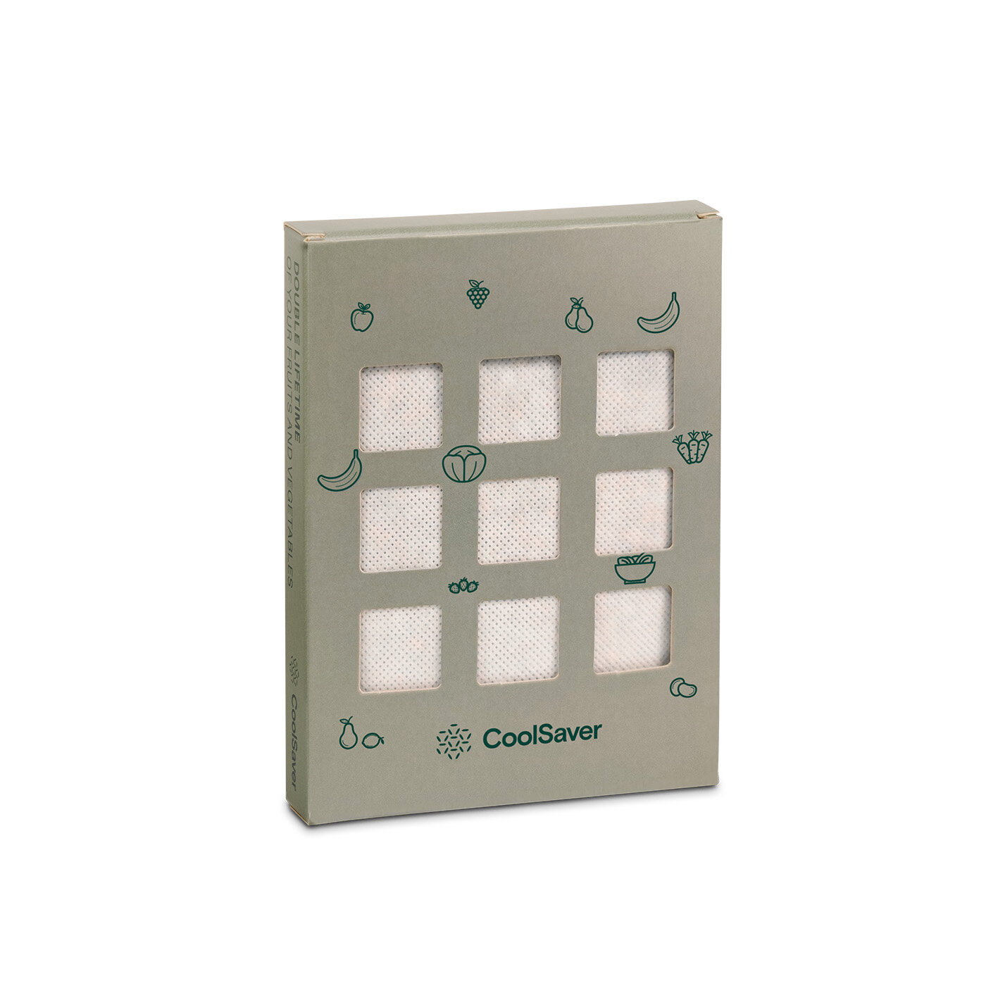 Med CoolSaver håller sig dina grönsaker fräscha längre genom en 100 % naturlig process. Zeolitmineralerna absorberar inte bara dålig lukt utan också etylengasen som dina grönsaker avger.
