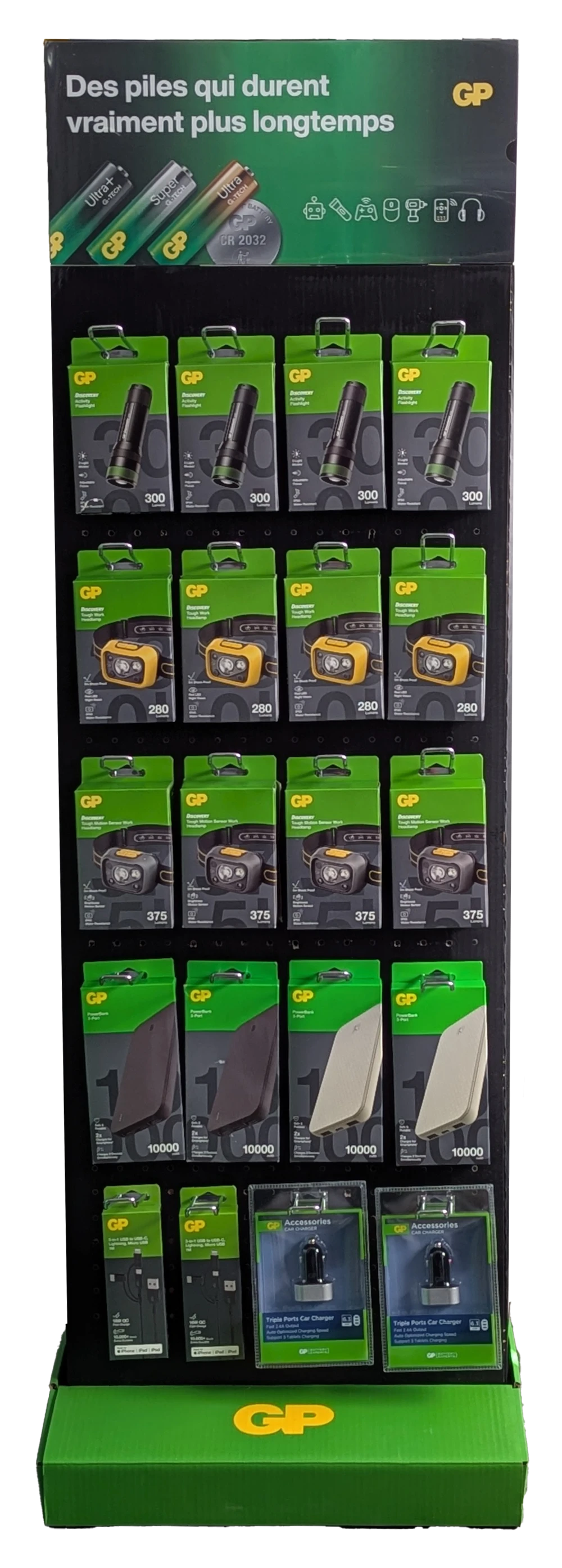Den här displayen passar perfekt i butiker där man vill skapa ett tydligt och kraftfullt intryck med GP:s välkända gröna varumärkesprofil. Idealisk för kampanjer, butiksexponeringar eller som en permanent plats i butik för att driva merförsäljning.