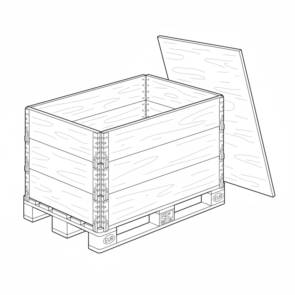 - Trälock som placeras ovanpå pallkragen för att skydda innehållet under transport.